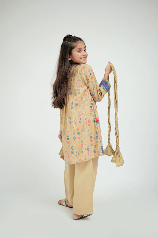 Fawn Gold | Casual Plus 3 Piece Suit | Cotton Gold Print Lawn