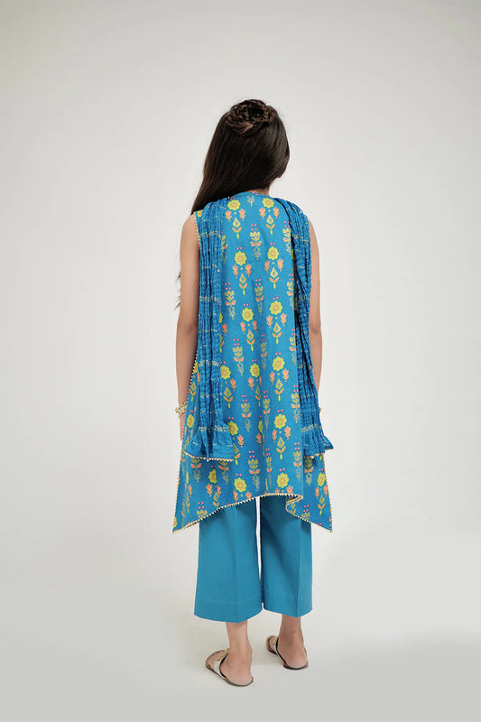 Light Blue Multicolor | Casual Plus 3 Piece Suit | Cotton Gold Print Lawn