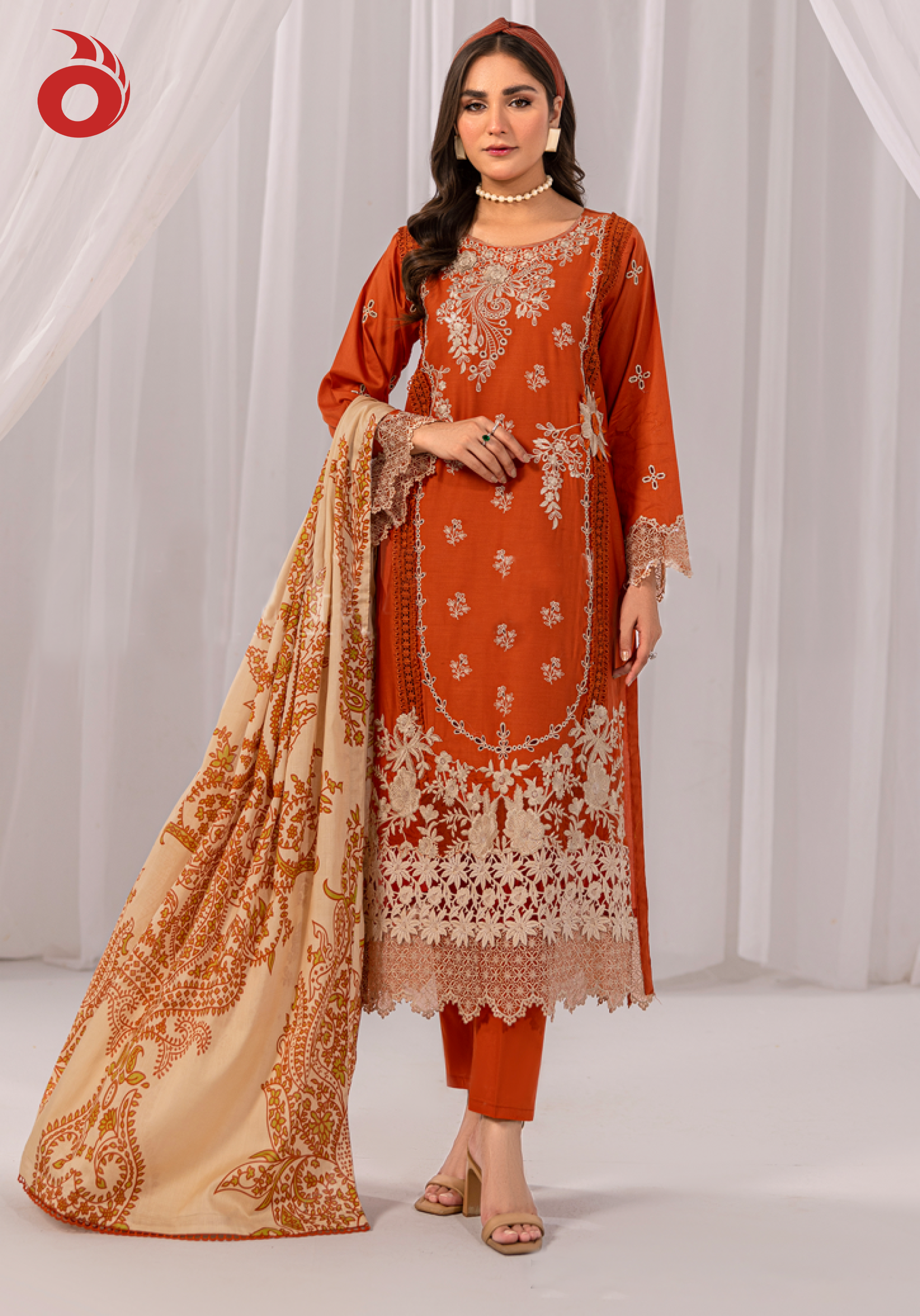 Luxury Cotton 3-Piece Chikankari 2429 Rust