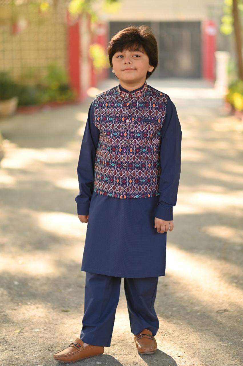 Elevate your young gentleman's style with our Waist Coat Suit. This elegant ensemble includes a crisp white shirt, a tailored waistcoat, and matching trousers, perfect for formal occasions and special events. Crafted with high-quality materials for comfort and durability, this suit ensures your boy looks dapper and feels confident.